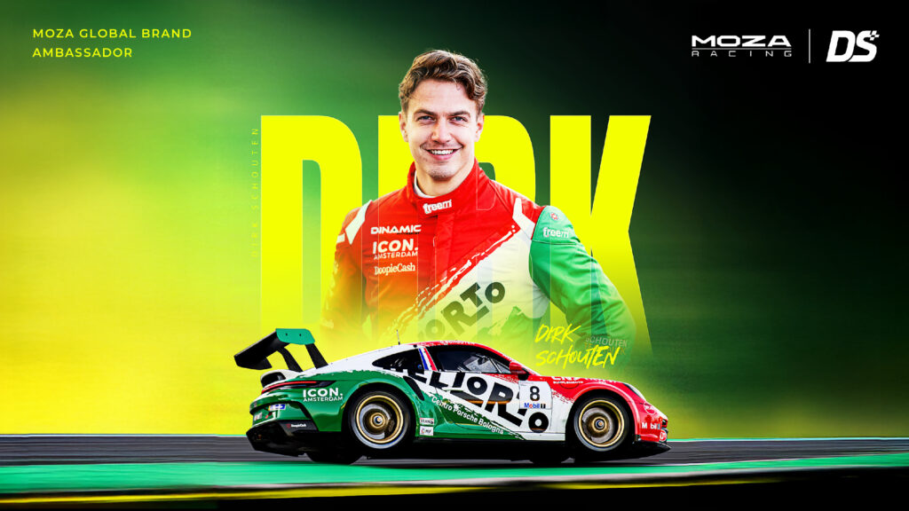 A MOZA Racing büszkén köszönti soraiban a holland profi versenyzőt, Dirk Schoutent. Dirk karrierje a szimulátorok világából indult, majd váltott a valódi Porsche versenyautókra. 2024-ben megnyerte a Porsche Carrera Cup Benelux bajnokságot, 2025-ben pedig győzedelmeskedett a Porsche Mobil 1 Supercup monacói újoncfutamán.